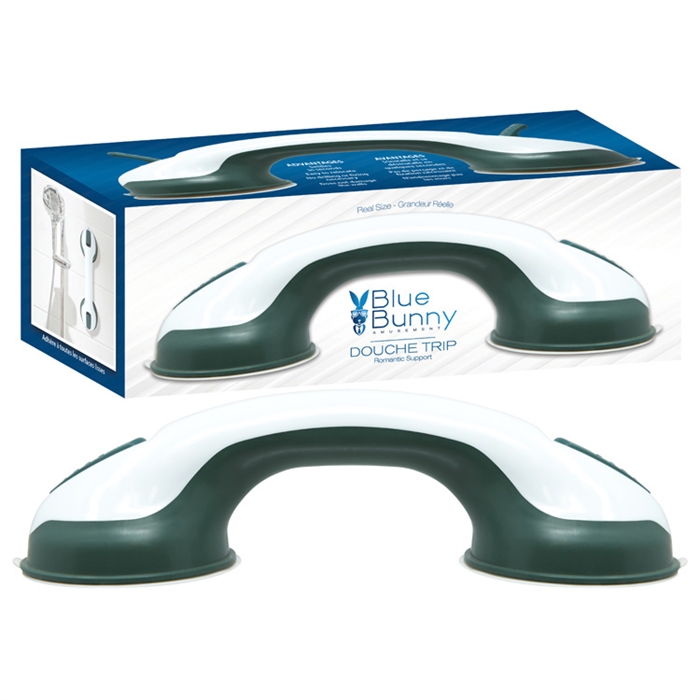 Douche Trip un autre produit pratique de la réputé Collection Blue Bunny. Faites de vos relations amoureuses dans la salle de bain, un moment de pur plaisir en toute sécurité. Placez Douche Trip tout simplement sur le mur de la baignoire ou de la douche et abaissez les languettes pour verrouiller les ventouses, il adhère bien à toutes les surfaces lisses en quelques secondes. Douche Trip s’installe instantanément et est facile à relocaliser, il suffit simplement de relever les onglets. Pas de perçage, ni de fixation nécessaire et il n’endommage aucunement les murs. Douche Trip est fait pour l’action… la salle de bain ne sera jamais plus la même!