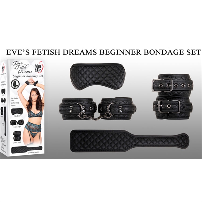 Réalisez vos fantasmes de bondage les plus fous avec cet ensemble de 4 pièces - il a tout ce dont vous avez besoin pour une récréation incroyablement sexy! Les chevilles et les poignets en cuir vegan rembourré au point de diamant feront en sorte que votre partenaire soumis se sente chéri, même s'il est méchant! Renforcez leurs autres sens avec un bandeau érotique prêt à leur donner envie d'une fessée de votre pagaie. Laissez libre cours à votre imagination avec d'innombrables possibilités de plaisir!