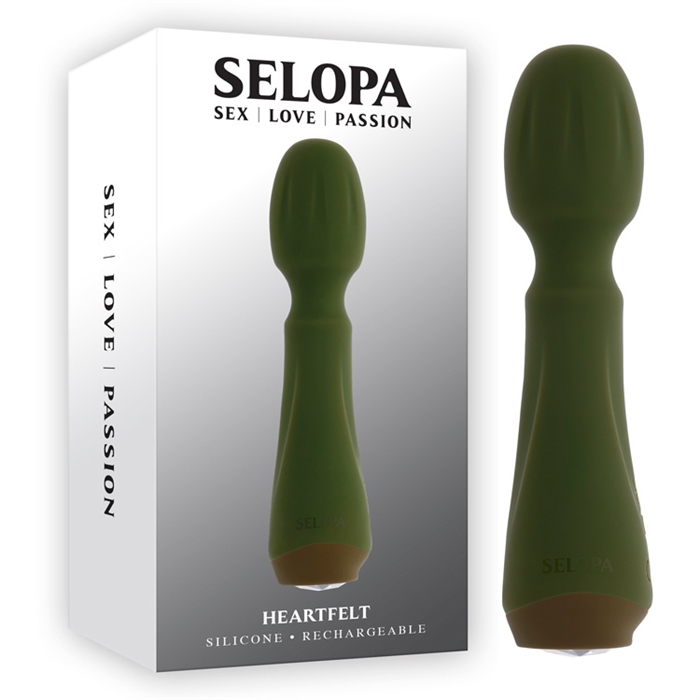 Découvrez la magie de ce petit vibromasseur puissant avec sa tête épaisse, texturée et flexible et son bouton de commande en forme de cœur à sa base.