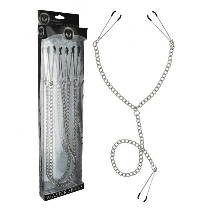 Connectez ses zones les plus sensibles ensemble. Ces pinces sont munies d'extrémités recouvertes de vinyle, d'une chaîne à maillons et d'une bague coulissante permettant de régler la pression n'importe où, juste assez pour les maintenir jusqu'à une très forte pincée de torture. Ils restent en place, ils sont faciles à utiliser, ils ont paraissent bien, et ils peuvent être lourds ou légers ou n'importe où entre les deux.Mesures: 24,5 pouces de longueur totale, la chaîne de mamelon mesure 18 pouces de longueur, la chaîne de clitoris mesure 15,5 pouces de longueur. Les brides s'ouvrent jusqu'à 1 pouce de largeur et se ferment complètementMatériel: Métal, vinyleCouleur: Argent