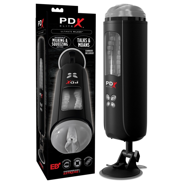 Activer le son - Appuyez sur le bouton du haut-parleur pour déclencher des gémissements sexy une fois que des écouteurs à broche sont branchés sur la base de Ultimate Milker. (Les écouteurs sont inclus.)