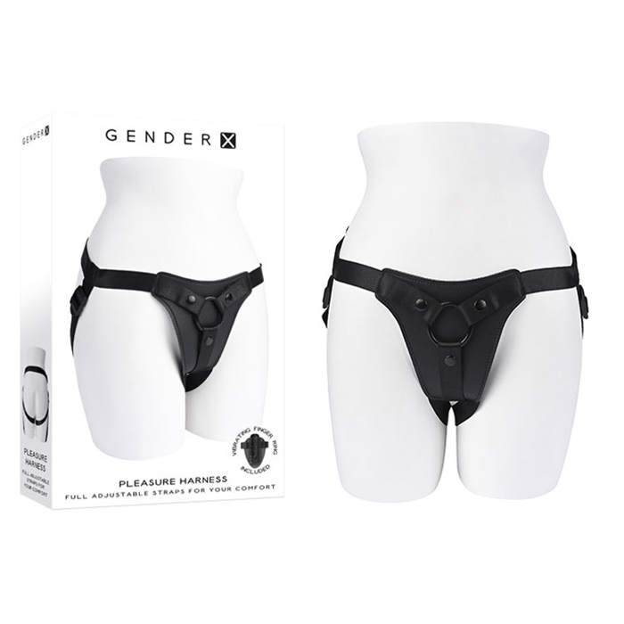 Cet élégant harnais en similicuir est conçu pour un ajustement parfait avec des sangles de taille et de jambe entièrement réglables qui se resserrent en douceur pour une sensation de sécurité et de confort. Un anneau à sangle fixé par trois boucles rivetées maintient les jouets en place pendant le jeu.