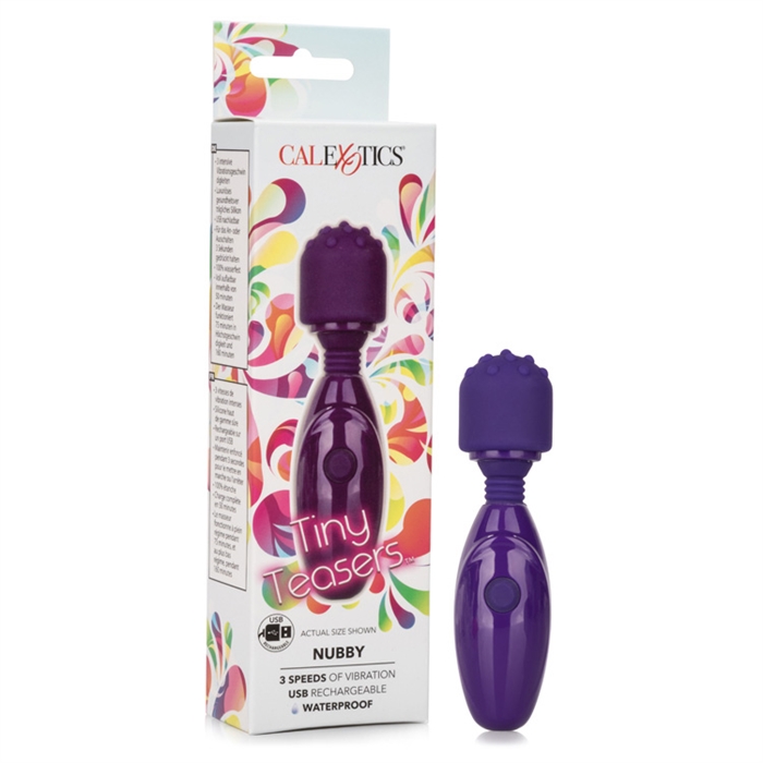 Augmentez la chaleur dans votre chambre, lors d'un rendez-vous amoureux ou lors de vos prochaines vacances avec le discret Tiny Teasers Nubby. Le masseur vibrant de format voyage vous passionnera partout avec votre cou flexible et ses 3 vitesses de vibrations intenses. En appuyant simplement sur un bouton, ce mini masseur ultra silencieux augmente facilement l’intensité des vibrations; appliquez la tête, avec ou sans pointe de plaisir rembourrée, sur les zones adoucies pendant que trois vitesses de vibration puissantes pulsent et stimulent. Contrôlez sans effort le pur plaisir avec le bouton en silicone facile à manipuler. Maintenez le bouton facile enfoncé pendant 3 secondes pour allumer ou éteindre. L'embout en silicone plaisir des masseurs-baguettes au design nubby stimulant chatouillera et taquinera à chaque pression du bouton. De plus, l'embout nubby est amovible pour encore plus de plaisir. Le cou flexible et la surface souple vous permettent de produire des vibrations sensuelles sous presque tous les angles. Utilisez la commande à bouton unique pour profiter de 2,5 heures de plaisir vibrant. Rechargez votre passion en seulement 50 minutes en branchant le câble USB fourni au port de charge à fermeture automatique situé à l'arrière de la baguette de massage. Les masseurs vibrants minces de taille discrète en font le compagnon de voyage idéal, glissez ce petit vibromasseur dans votre sac à main, votre poche ou votre sac de voyage pour transporter votre extase partout. Profitez du plaisir avec cette masseuse intime amusante de la collection Tiny Teasers.
